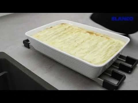 The Blanco Etagon 500-U Silgranit 1 Bowl Undermount Kitchen Sink with Rails features a generously staggered bowl with added functionality of the Etagon rails. The multifunctional rails enable you to work in a particularly ergonomic way and carry out various activities at the same time such as setting hot pots down on the rails while you quench cooked vegetables in ice-cold water into the bowl below. Simply insert a cutting board into the edge of the bowl and use the area above the bowl for optimal food preparation. Freshly chopped food can be transferred directly from the cutting board into dishes placed on the rails. The multi-level concept is also ideal for cleaning bulky dishes easily. The sliding rails are an ideal place to put dirty baking trays, making washing dishes easier than ever before.