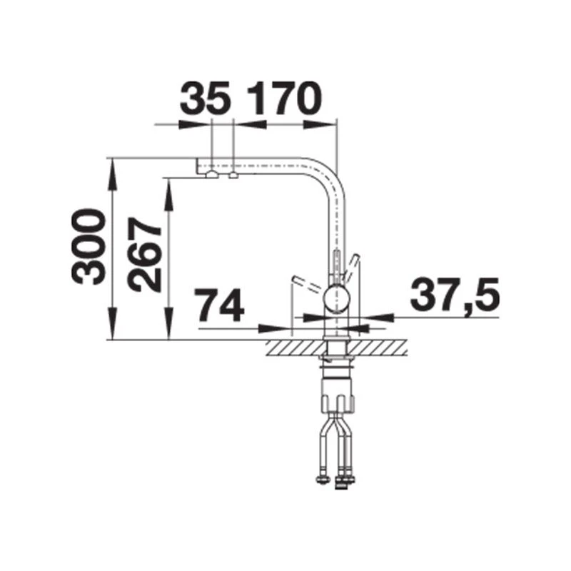 The Blanco FONTAS II Filter Kitchen Mixer is a comfortable 3-in-1-tap with a cold and warm water lever on the right and a filtered water lever on the left. There is a separate water circuit with extra spout for filtered water which means no mix with the mains water. It is space-saving and practical: with the 3-in-1-tap which means no additional drilling is required for the filtered water supply.