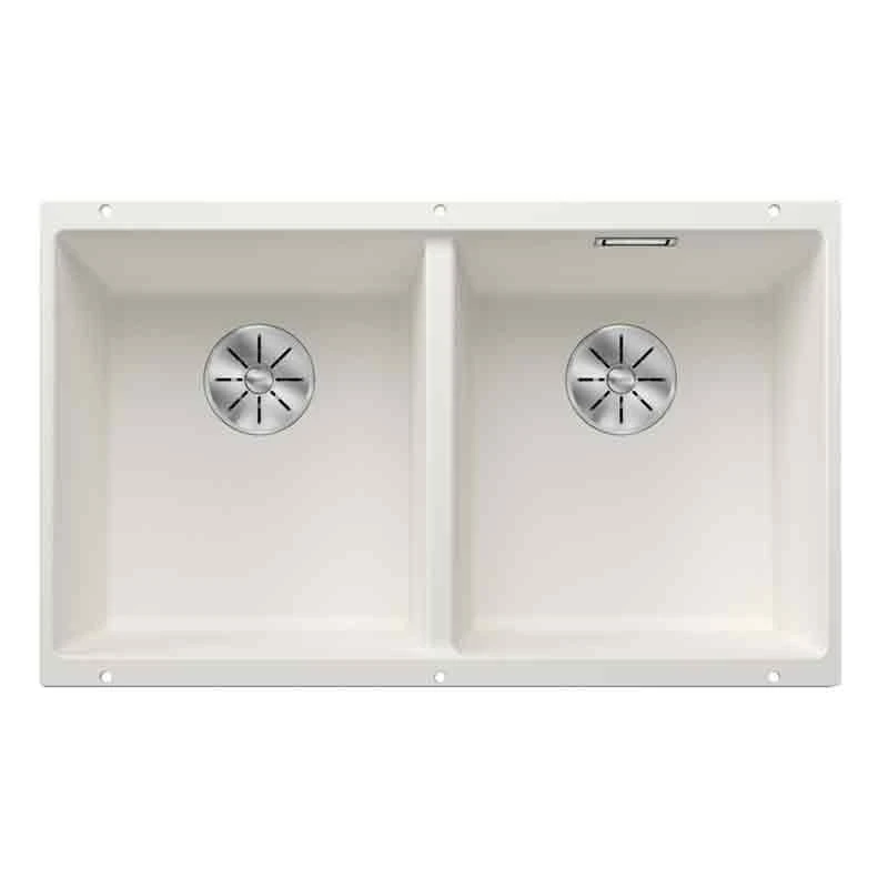 Blanco SUBLINE 350/350-U 2 Bowl Undermount Silgranit Kitchen Sink with Manual InFino Waste – White – 523581