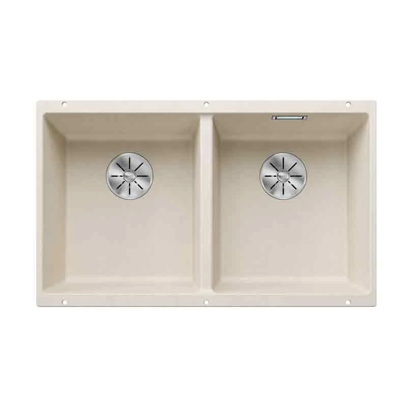Blanco SUBLINE 350/350-U Silgranit 2 Bowl Undermount Kitchen Sink with Manual InFino Waste – Soft White – 527164