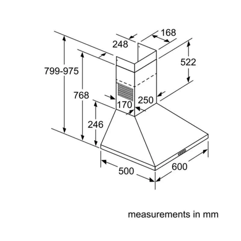Bosch Series 2 DWP64BC50B 60cm Pyramid Chimney Hood – St/Steel – Details