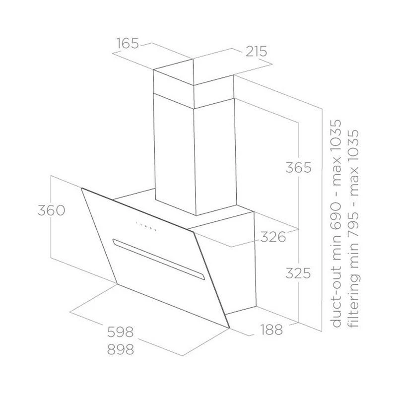 - Height Of Chimney (mm): 690-1035mm Ducting, 795-1035mm Recirculating