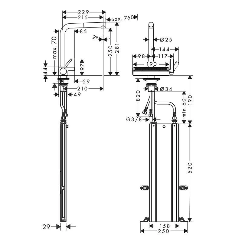 - sBox for quiet, smooth and protected Hose guidance in the cabinet, under the countertop