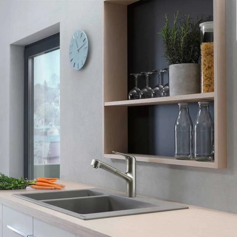 hansgrohe Focus M42 Single Lever Kitchen Mixer Tap 150 With Pull-Out Spout Single Spray Mode – Stainless Steel – 71814800