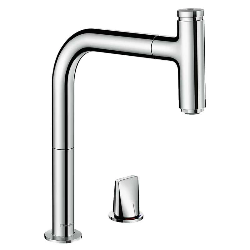 hansgrohe Metris Select M71 EcoSmart 2-Hole Single Lever Kitchen Mixer Tap 200 With Pull-Out Spout & Sbox Single Spray Mode – Chrome – 73825000