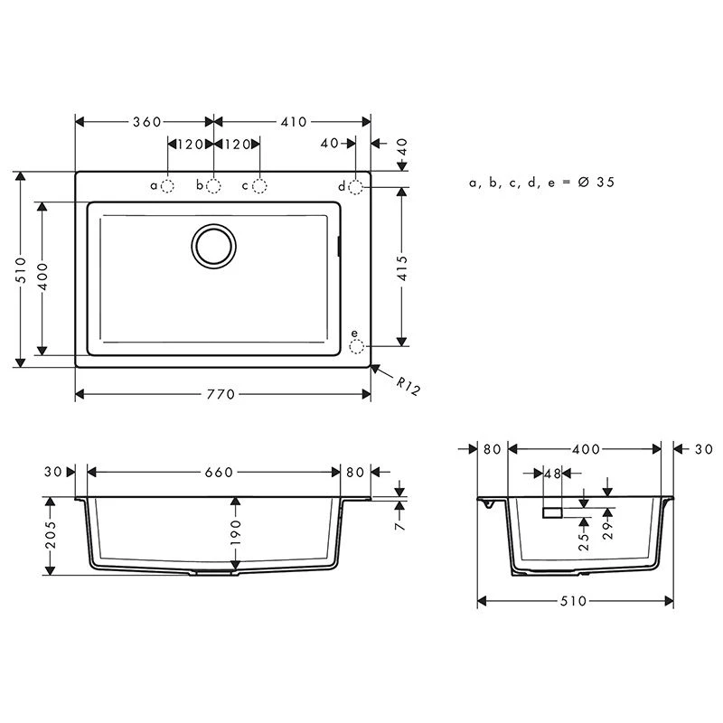hansgrohe S510-F660 Built-in Sink 660 – Stone Grey – 43313290 Details