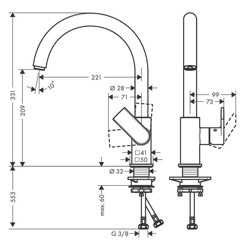 hansgrohe Vernis Shape M35 Single Lever Kitchen Mixer Tap 210 With Swivel Spout – Matt Black – 71871670