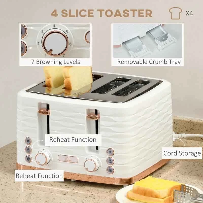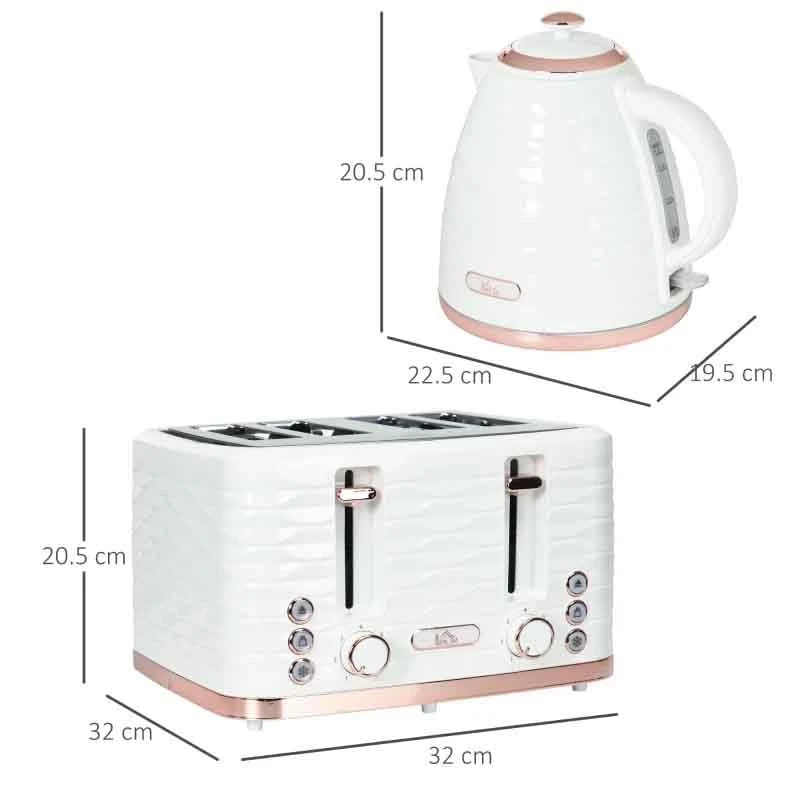 This HOMCOM set offers a stylish kitchen with a 1.7-litre rapid boil kettle and a four-slice toaster.