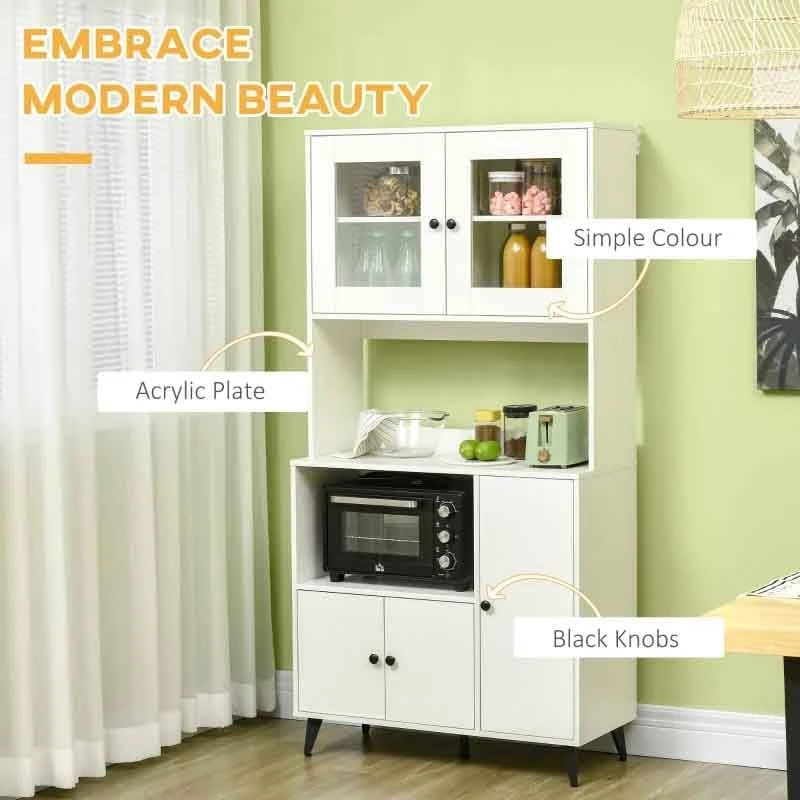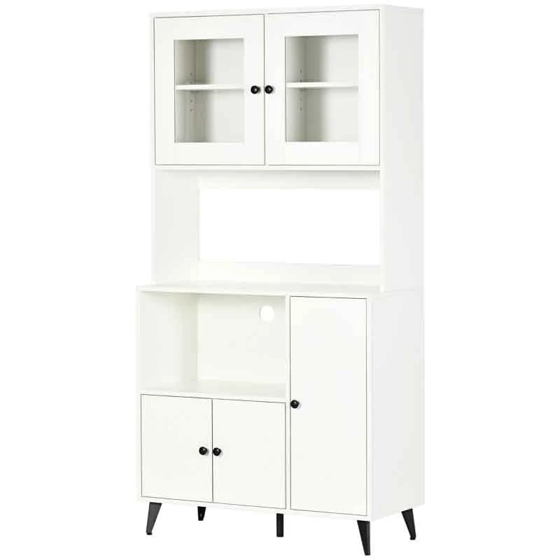 This HOMCOM pantry cabinet is designed to help organize your kitchen, eliminating the need for stacking pots and pans. It provides easy access to everything, eliminating the need to move them.