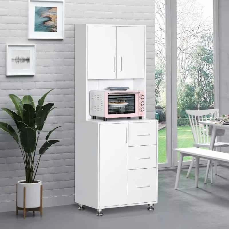 This HOMCOM kitchen dresser features 2 storage boards and 3 drawers, making it versatile for various rooms like the kitchen, living room, or study. It features an anti-toppling design and cable management system for a better user experience.