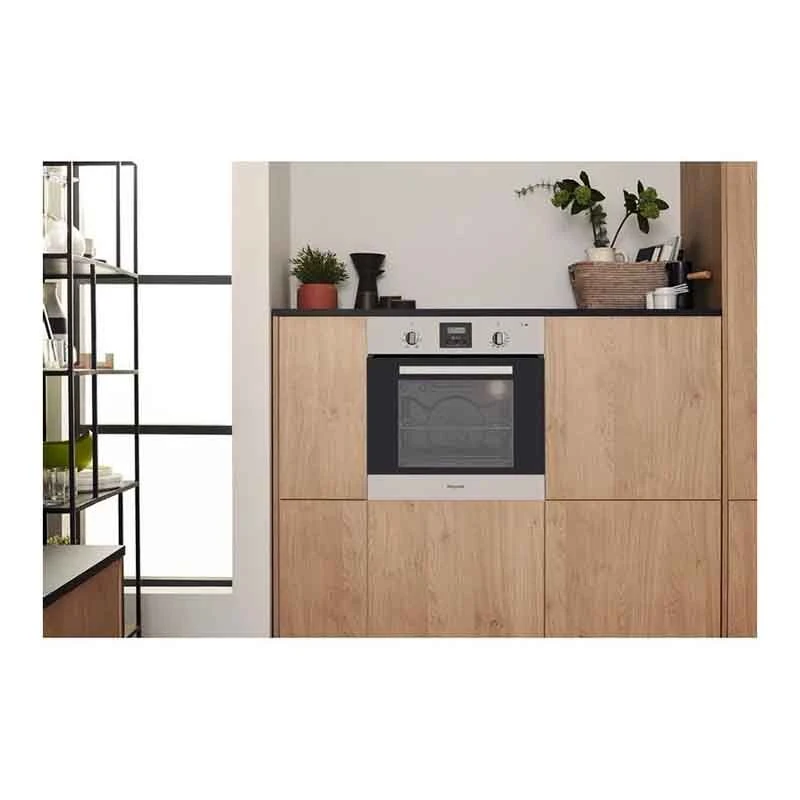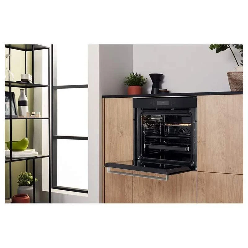 The Hotpoint Built-In Oven (AO Y54 C IX) is an eye-catching, sleek addition to your kitchen decor that is designed to make your cooking experiences enjoyable. With a capacity of 65L, an A energy rating, simple cleaning solutions, and impressive technology to ensure even heat for all-around cooking. The new style of convection system, multiflow technology, creates an all-enveloping heat flow that pushes heat into every inch of the oven cavity for consistently even, delicious dishes every time – regardless of which shelf you’re using, perfect for perfectly risen cakes and breads, as well as reducing cold spots in your favourite dishes.