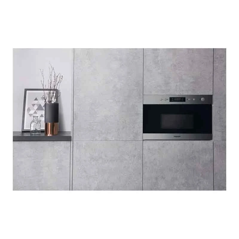 A compact model full of style and versatility, the Hotpoint Built-In Microwave and grill (MP 314 1X H) in stainless steel is an attractive addition to your kitchen. Designed for built-in installation this microwave can be placed in between kitchen counters. This microwave oven supports 4 power levels to heat, defrost and cook a wide variety of dishes to perfection. The 22 L microwave and grill can be operated using the push buttons, fully equipped with LCD display combined with flush user interface with touch sensors, to easy interact with microwave with a perfect feeling.