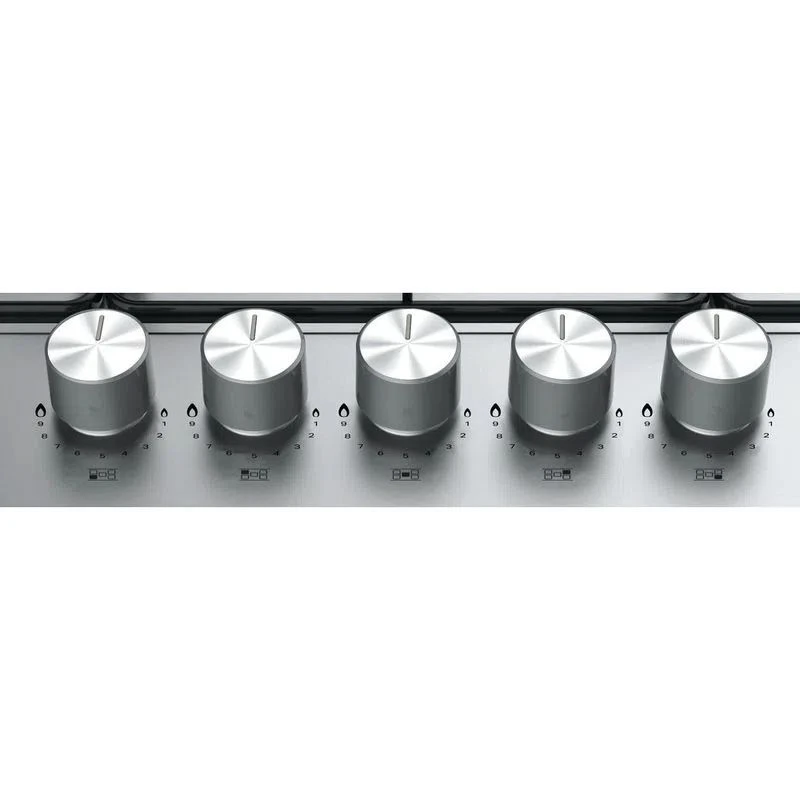 This 75cm gas hob features elongated cast iron pan supports to keep your pans safe and stable. Adjusting the flame power is easy thanks to the easy to operate rotary knobs, the controls are ergonomically designed to be gripped and turned easily. To make sure each component of your dish is cooked to perfection, this hob features 5 burners with different flame levels that delivers powerful heat ensuring consistently high quality results. Each area uses an automatic ignition switch and is fitted with a flame safety device to ensure that when the flame goes out, the gas supply stops, allowing you to slumber with peace of mind.