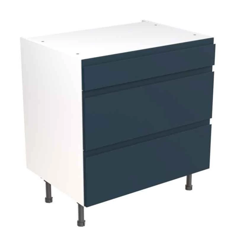 Kitchen Kit Rigid J-Pull 800mm 3 Drawer Base Cabinet – Ultra Matt – Indigo Blue – Pre-Assembled – RKKJ1307