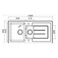 Thomas Denby Melody Pro 1.5 Bowl Reversible Ceramic Kitchen Sink & Drainer – Black Satin – MEL1020BL