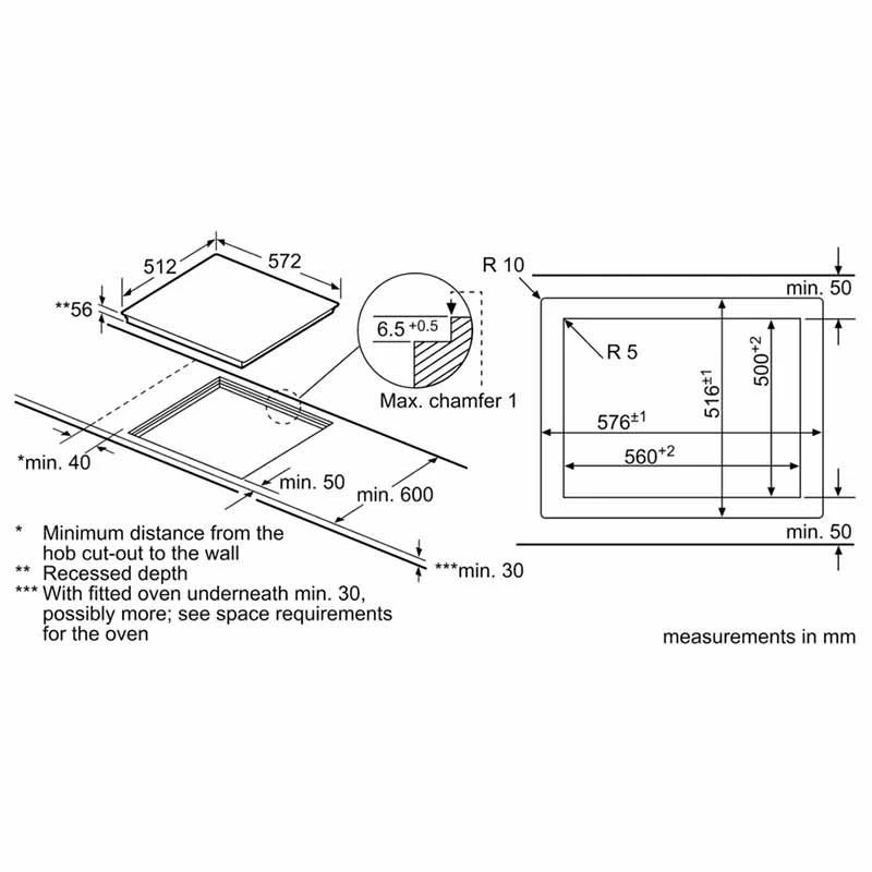 - Hob Features: CombiZone, Pan recognition, LED Zone timers, ReStart