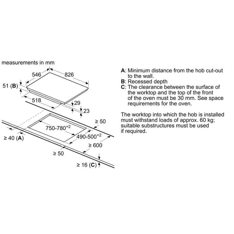 - Dimensions: H 51 x W 826 x D 546mm