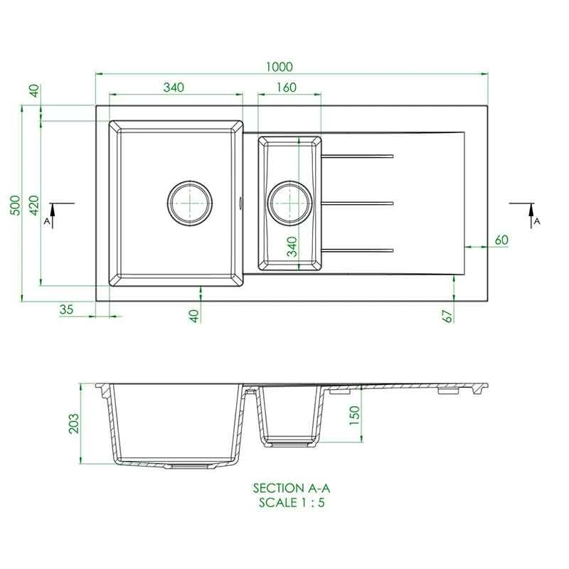 Prima+ 1.5 Bowl & Drainer Inset Granite Kitchen Sink – Black – CPR322 Details