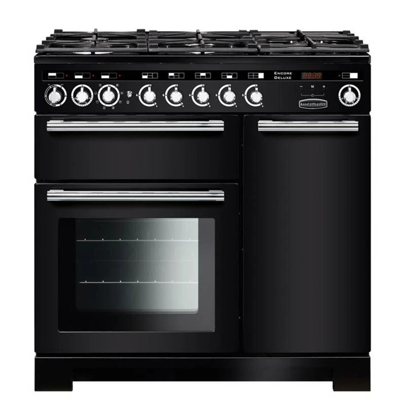 Rangemaster Encore Deluxe 90cm Dual Fuel Range Cooker (Black/Chrome) EDL90DFFBL/C – Details