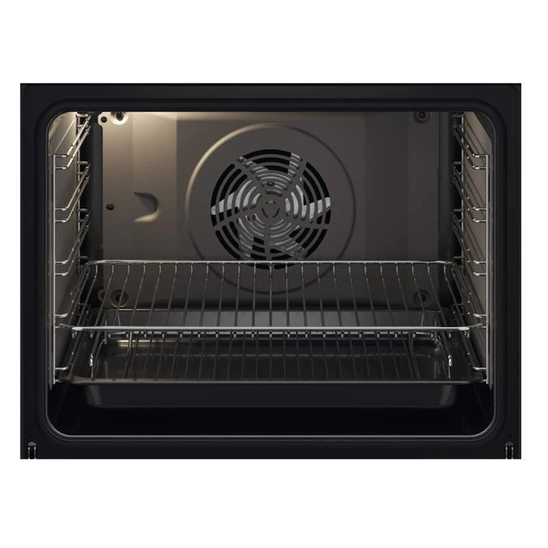 The Zanussi ZOCNX3XR B/I Side Opening RHH Single Electric Oven circulates hot air heat with its fan and ring element. Air is continuously moved around in the oven cavity, to make sure that dishes can be cooked on different levels at the same time. The hot air generated inside the oven during cooking is moved around with a fan, so all your dishes receive the same amount of heat. This lets the oven heat up faster, which means you’ll get the same results using 20% lower temperatures, saving time and using less energy. The oven has special Catalytic Cleaning liners on the walls, which clean it while switched on. High temperatures let the surface absorb splatters and residue, to stop the oven getting greasy. So you won’t have to scour or scrub after cooking.